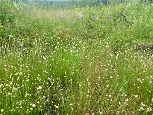 この花は一体何だろう?ワタスゲのように一面に咲いている。