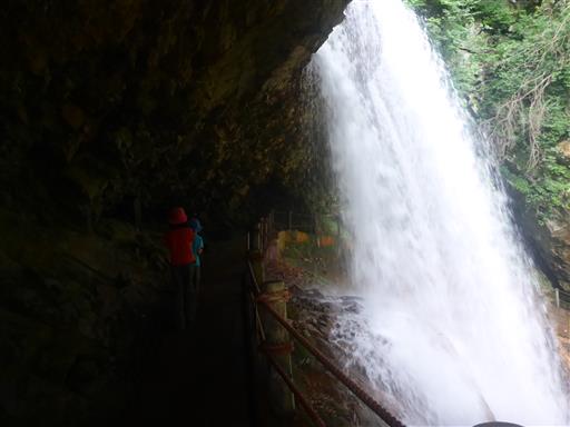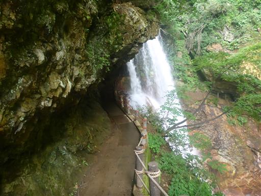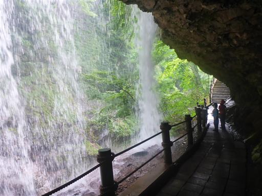 この滝は裏見の滝で、滝の裏側を通ることができる。