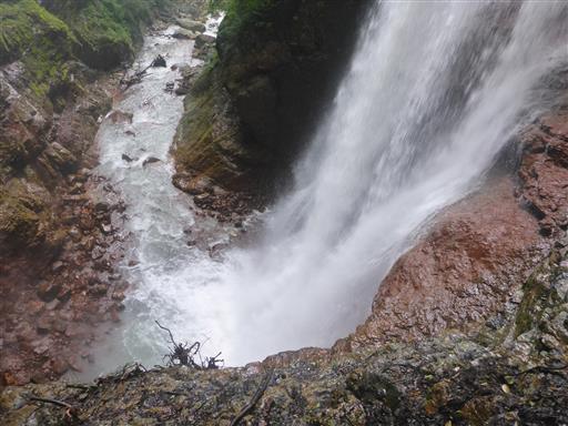 裏側から上を見上げる。勢いよく水が飛び出している。