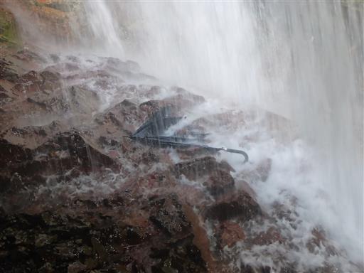 石碑が置かれている。遥か古から滝の裏側に行く道があったのだろうか?