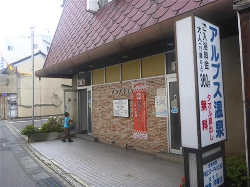 観光を終えたらそのまま風呂に向かう。今回はアルプス温泉のリベンジ。