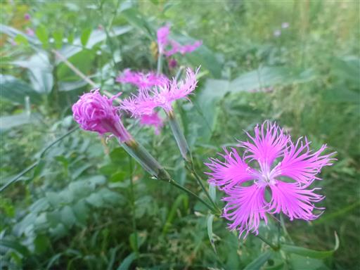 ナデシコの花がたくさん咲いている。蕾はもじゃっとしている。
