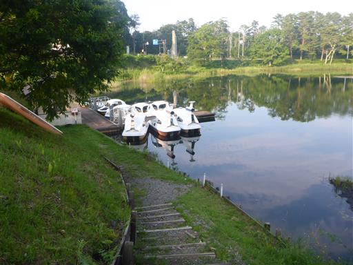 キャンプ場に戻ってくる。少し時間があるため、大座法師池を一周してみる。