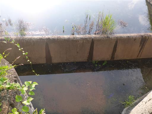 池の水の出口。開閉式にはなっておらず、一定以上の水量になると水が流れ出るようになっている。