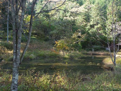 登山道入口にある神ノ池。ひっそりとした小さな池だ。
