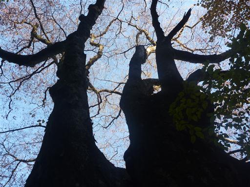 太い幹は途中で分かれている。このことから夫婦ケヤキと呼ばれているそうだ。