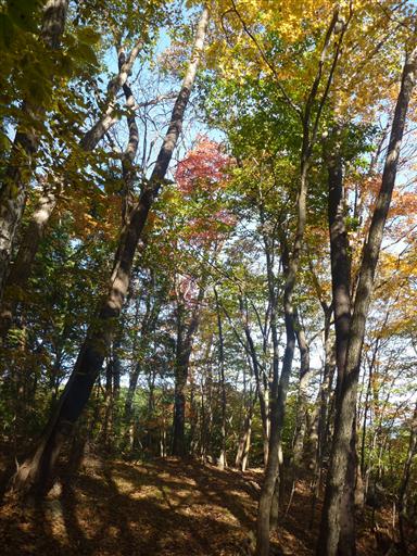 この辺りは明るい落葉広葉樹林帯で、紅葉し始めている。