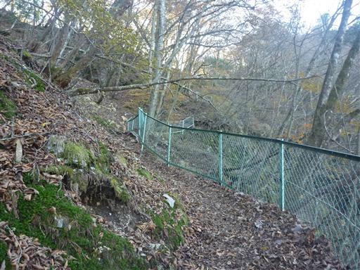 山頂付近は急斜面になっていて、フェンスが張り巡らされている。