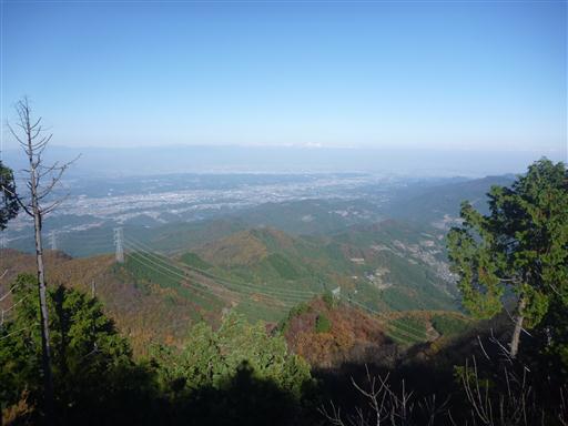 はるか遠くには白い峰々がかすかに見えている。北アルプスのようだ。