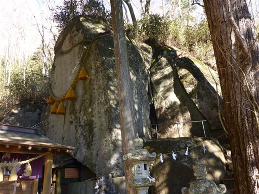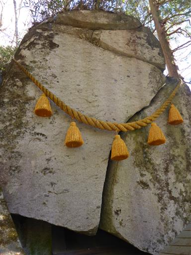 大石には太い綱が巻かれている。この石が石割神社の御神体となっているようだ。