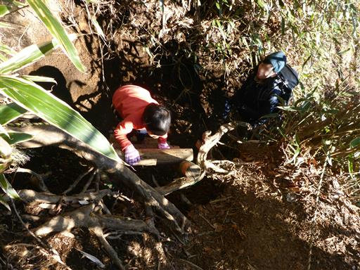 下りは登りとは別の道を歩く。こちらの道は傾斜のきつい坂道だ。
