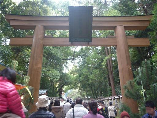 大鳥居を潜る。2011年に再建された比較的新しい鳥居だ。