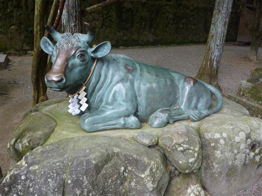 牛の像。存在感があるが神社の由来とは全く関係ないようだ。