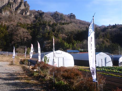 岩櫃と書かれた幟が並んでいる。