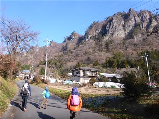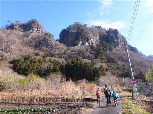 岩櫃山を眺めながら車道を歩いて登山口を目指す。