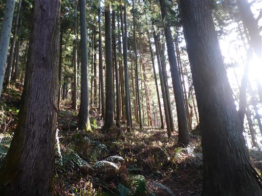 最初は植林地帯の中の登り。