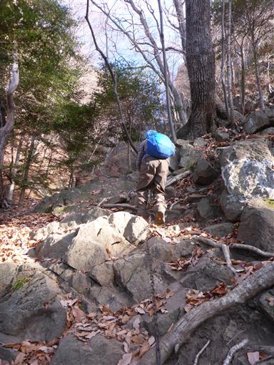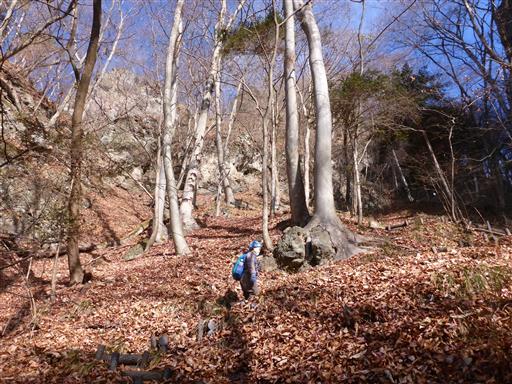 岩場地帯を抜ける。岩櫃城址までは尾根通りと沢通りがあるが、尾根通りを選択。