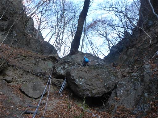 天狗のかけ橋方面に続く鎖場。