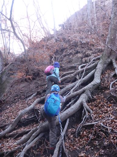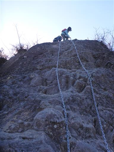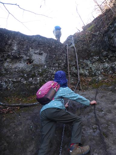 ここから本格的な鎖場になる。息子はすいすいと登って行く。