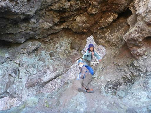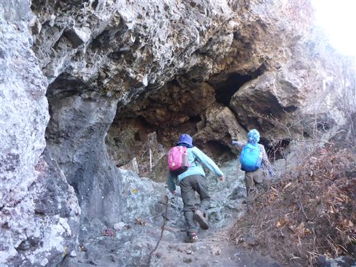 岩の左手に穴を発見。
