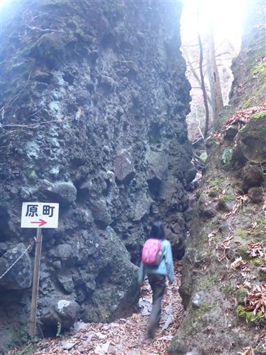 登山道はこの岩を潜って向こう側に付いている。