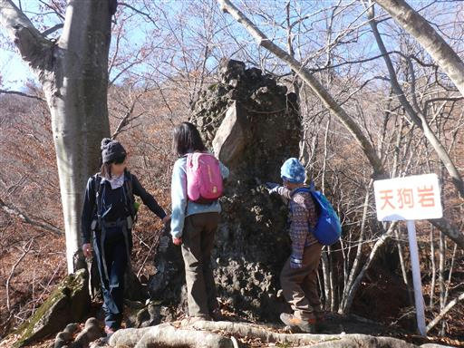 天狗岩と名付けられている。登山道にポツリと立つ岩で、これも不思議な岩だ。