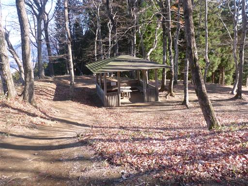 東屋がある開けた平地だが、かつて城があった面影は残っていない。