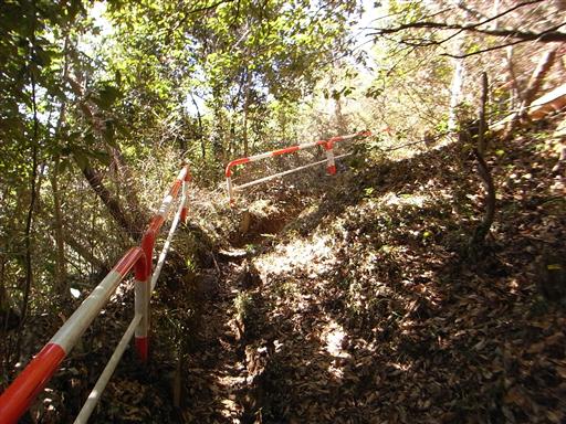 山には似つかわしくない派手な色の手すりがつけられている。