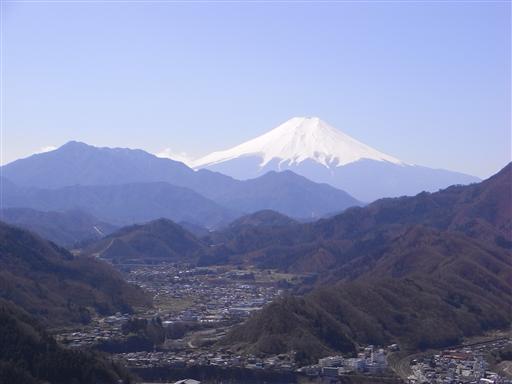 左から九鬼山、三ツ峠山、高川山。