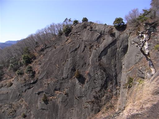 大岩壁の側で1時間ほど昼食タイムをとり下山を開始する。