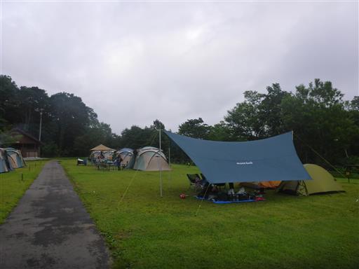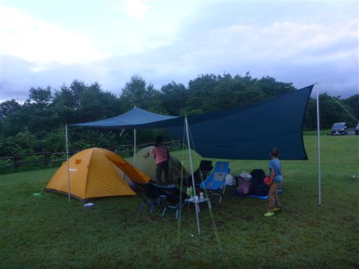 雨は降ったり止んだりだが、幸い止んでいる時に設営できた。