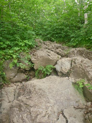 簡単な岩場。ロープがあるが使うまでもない。