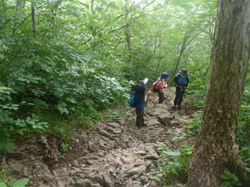 最初は傾斜が緩かったが、岩がちな地形になってきて傾斜がきつくなってくる。