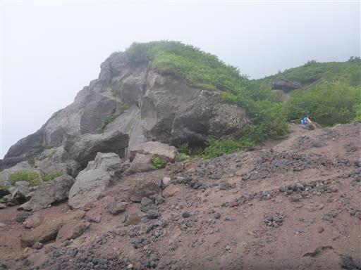 巨大な岩。この裏が六合目だ。