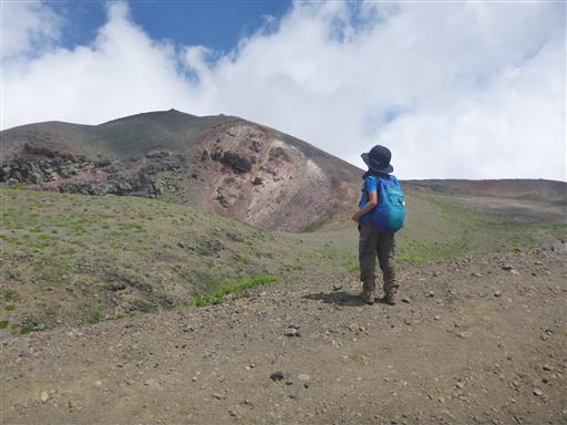 途中で、火口縁と火口に下りる道に分かれたため、火口に下りる道を選択。