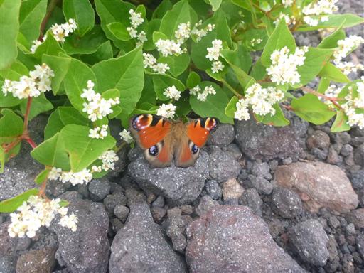 ここでもクジャクチョウを発見。やっとゆっくりと羽を開いてくれた。