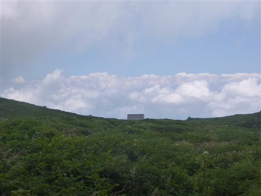 山頂は雲に覆われ展望はほとんどないが、山頂部の展望は開ける。