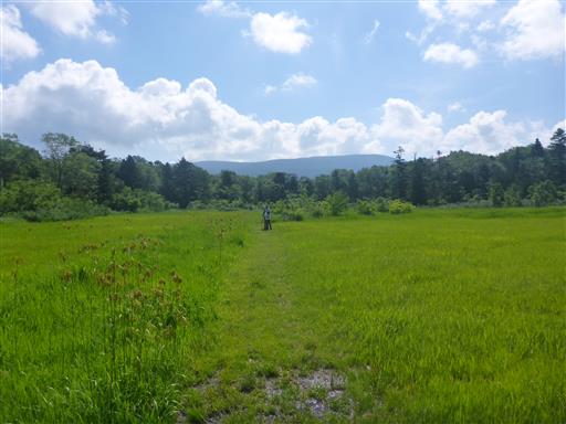乾燥気味の湿原だが、登山道はぬかるんでいる。