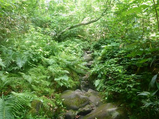 しばらく歩くと沢を離れて、再び緑の道になる。