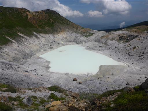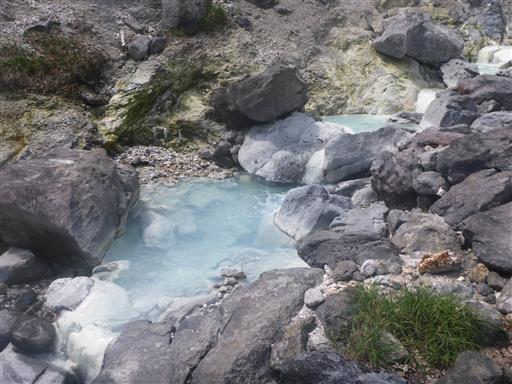 草津白根山の湯釜と同じような色をしている。