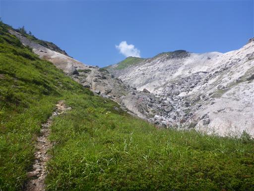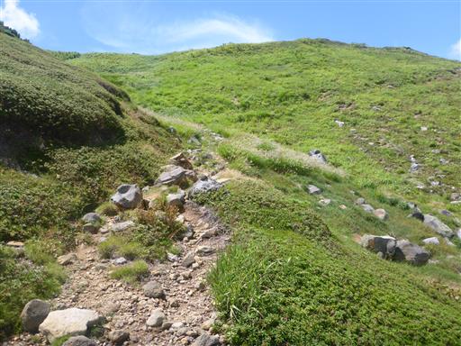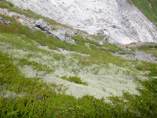 相変わらず樹木が無く、ハイマツなど高山帯の植物が多い。