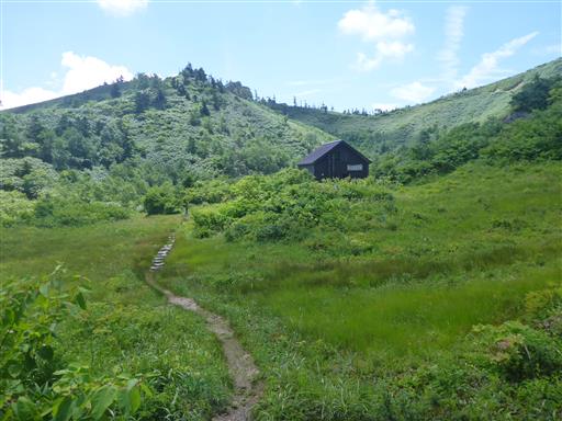焼山避難小屋が見えてきた。