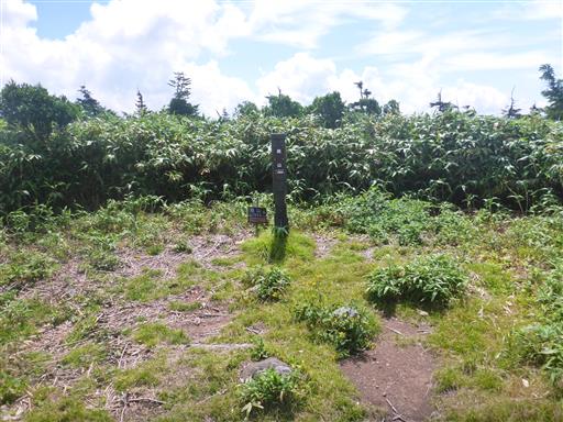 背の高い笹に覆われ展望はなく、これまでの風景と比べるとずいぶん地味な山頂だ。
