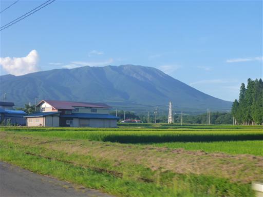 遠くに森吉山が見えている。秋田を代表する山で良く目立つ。