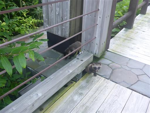 キャンプ場に戻り、ホテルへの道中、湯ノ沢大橋でタヌキの子供?を発見。