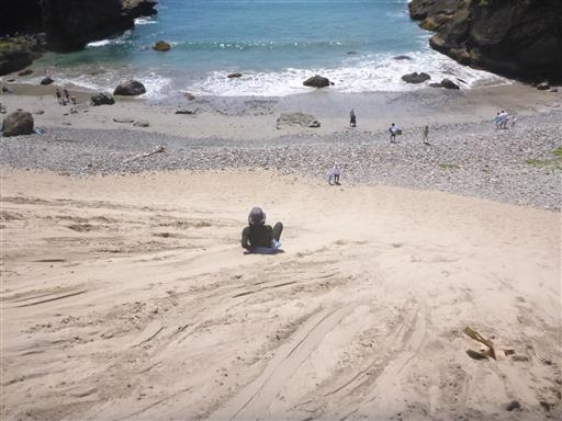 しばらく波で遊んだら、そりを借りてサンドスキー場に向かう。