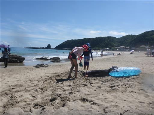 子供たちに砂で埋められてしまう。砂の中は暖かい。