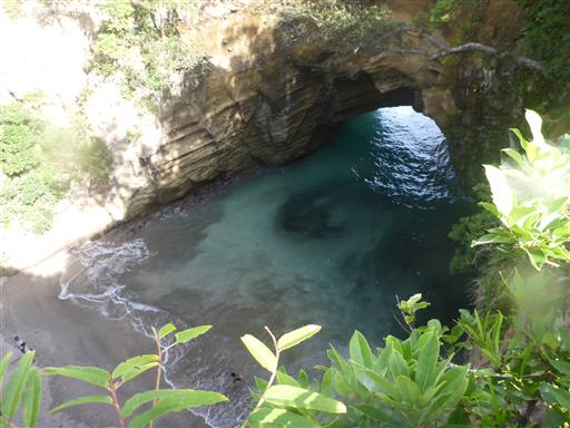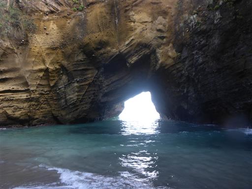 波が作った洞窟の天井が崩れてできた不思議な空間だ。