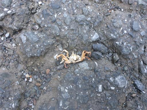 道の側に川があるので、車道でも様々な生物が見つかる。