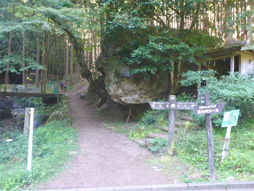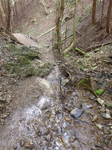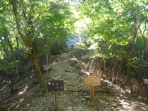 落石が危険なため迂回路の女坂を勧める標識がある。
